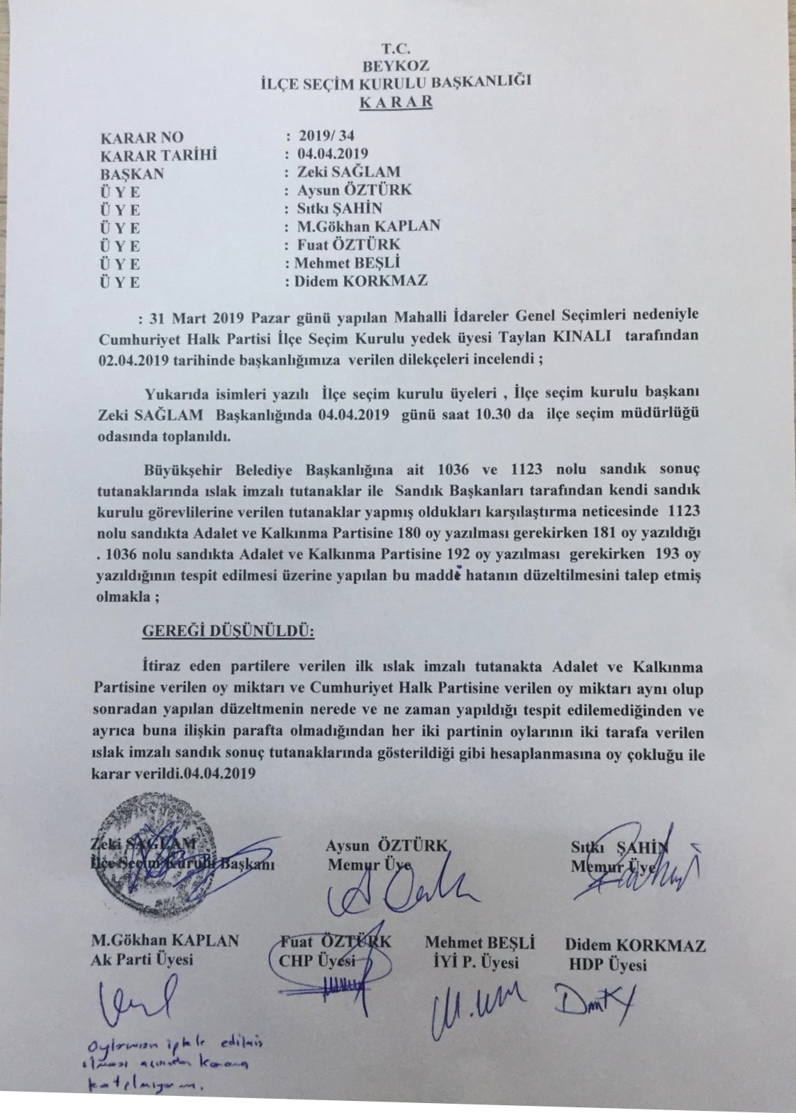 Yaratmak istedikleri 3000 oyluk kaos Adalet ve Kalkınma Partisi yetkililerine görmek istediği bir hayaldir. Gerçek ekteki ilçe seçim kurulunun kararıyla sabit ve nettir.