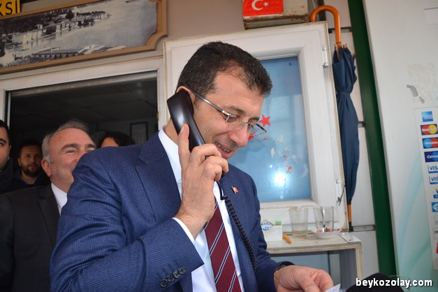 İmamoğlu, gezi sırasında Beykoz Meydanda ki bir taksi durağına da uğradı. Durakta görevli taksicilerle sohbet ettiği sırada telefonun çalması üzerine İmamoğlu, durak görevlisinden telefonu alarak müşteriye cevap verdi. Önce adresi alan İmamoğlu, daha sonra ise kendisini tanıttı. İmamoğlu, telefonu kapattıktan sonra adresi durak görevlisine vererek taksiyi müşterinin adresine yönlendirdi. Telefonu kapattıktan sonra esprili bir dille rakibi Binali Yıldırım’a göndermede bulunan İmamoğlu, “Hep o benim yaptığımı yapmayacak, onun yaptığını biraz da ben yapayım” dedi.