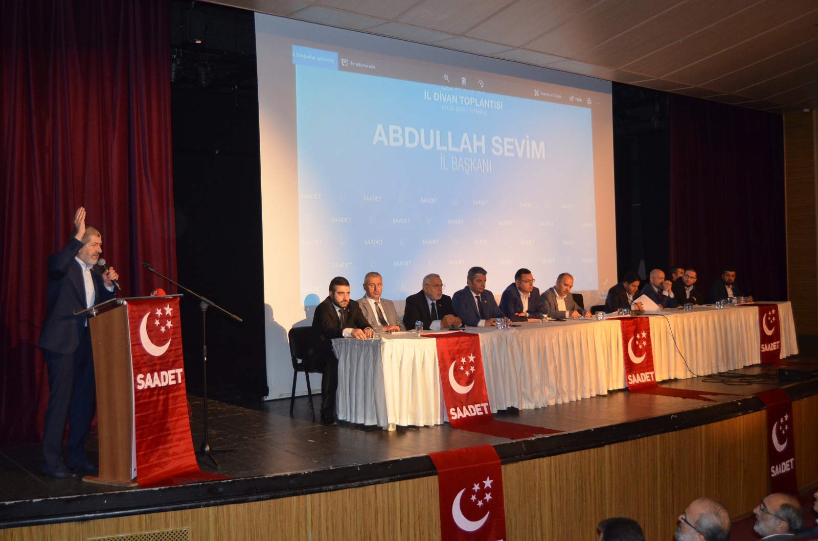 Divan Programında bir konuşma yapan Saadet Partisi İstanbul İl Başkanı Dr. Abdullah Sevim, partisinin 3 Kasım’da gerçekleşecek büyük kongresinin önemine dikkat çekerek, “Birlikte 2. Erbakan dönemini yaşadığımız Genel Başkanımız, Bilge Başkan Temel Karamollaoğlu liderliğinde nice zaferlere yürüyeceğiz” dedi. Sevim şöyle devam etti: “Tabii ki bu süreçte, tüm Türkiye’deki teşkilat mensuplarımızın yükü ağır olacak. Ancak biz İstanbul olarak çok daha ağır bir yükü omuzlayacağız. Çok daha büyük bir sorumluluğa sahip olacağız. Elele vererek başaracağız. Milli Görüşün yeniden ve önlenemez yükselişini İstanbul’dan başlatacağız.”