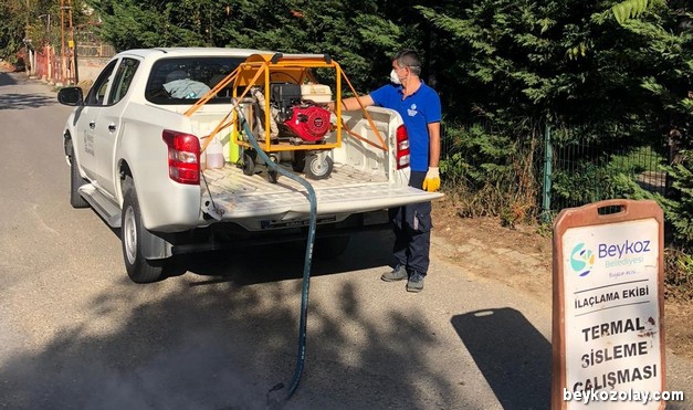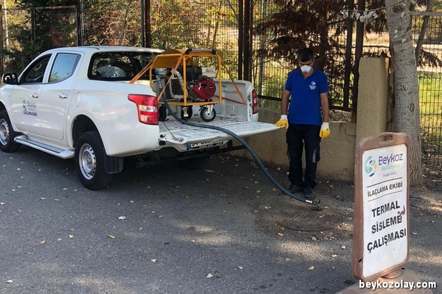 Beykoz Belediyesi bünyesinde görevli 12 kişilik 6 ayrı ekip, her hafta aynı gün aynı mahallede olacak şekilde kanalları araç üzeri özel imal edilen termal sisleme makinasıyla ilaçlıyor.