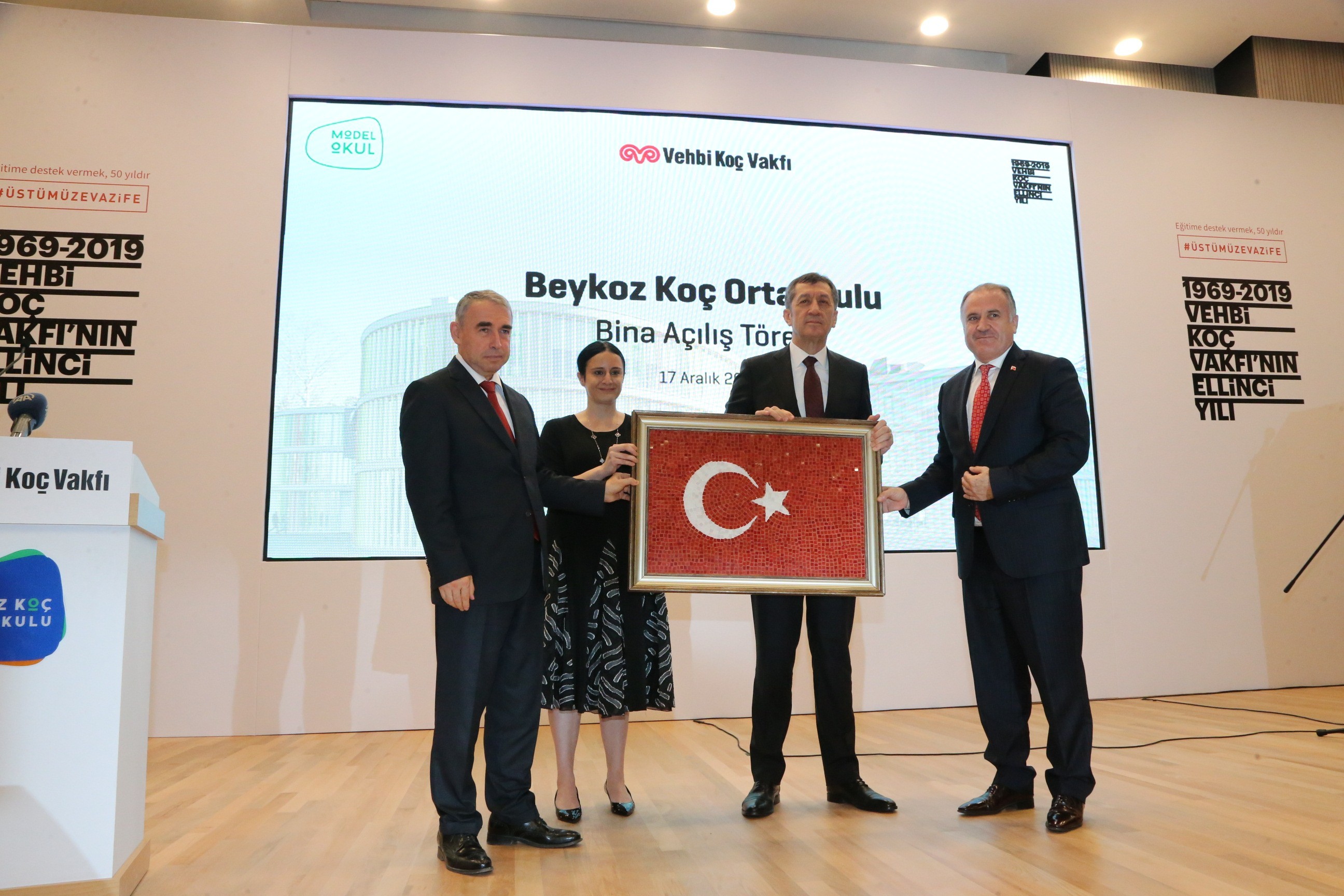 Milli Eğitim Bakanlığı bünyesinde mimari ekiplerle model ve örnek okul çalışmaları yürüttüklerini ifade eden Milli Eğitim Bakanı Prof. Dr. Ziya Selçuk, yapımı tamamlanan okulun ülkeye bir armağan olduğunu vurgulayarak, Beykoz Koç Ortaokulu’nun kişisel olarak takip ettiği bir proje olduğunu ifade etti.