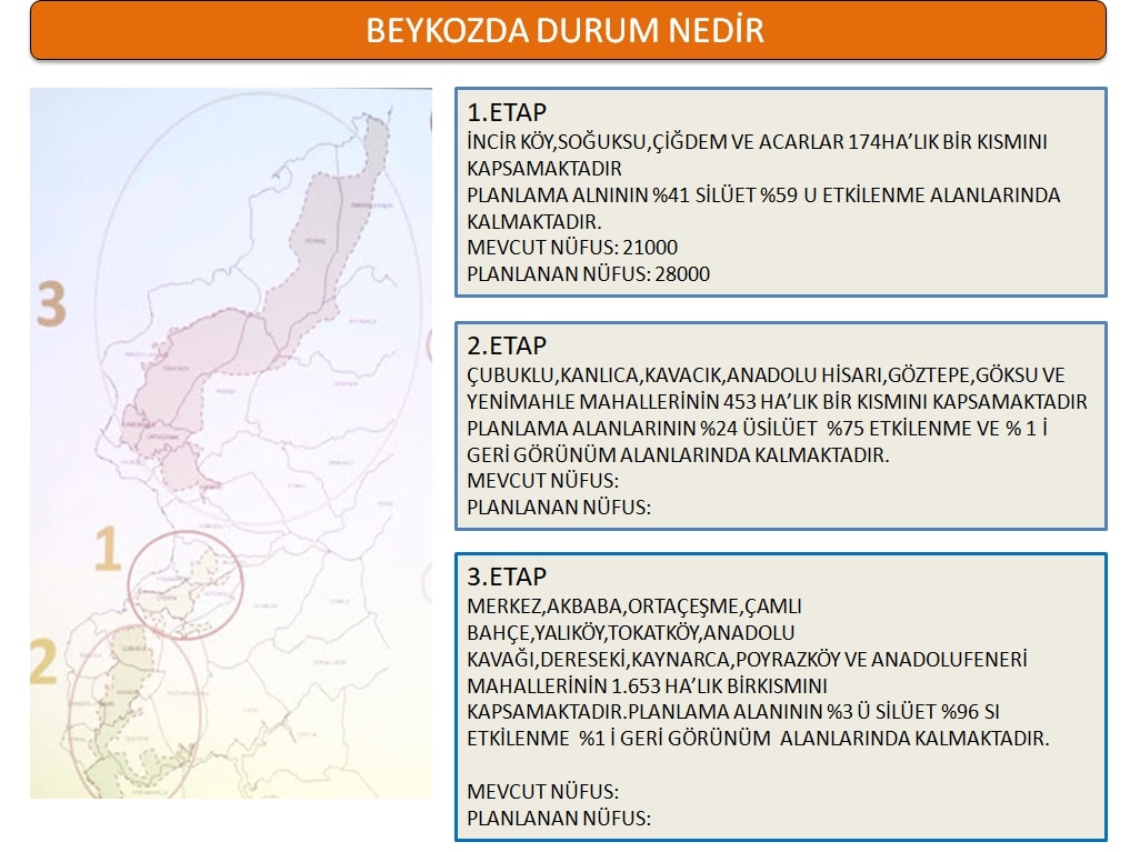Muhterem kardeşlerim; bugüne kadar yapılan çalışmalara baktığımızda Beykoz’un imar planlarının üç etap halinde yürütüldüğünü görmekteyiz.