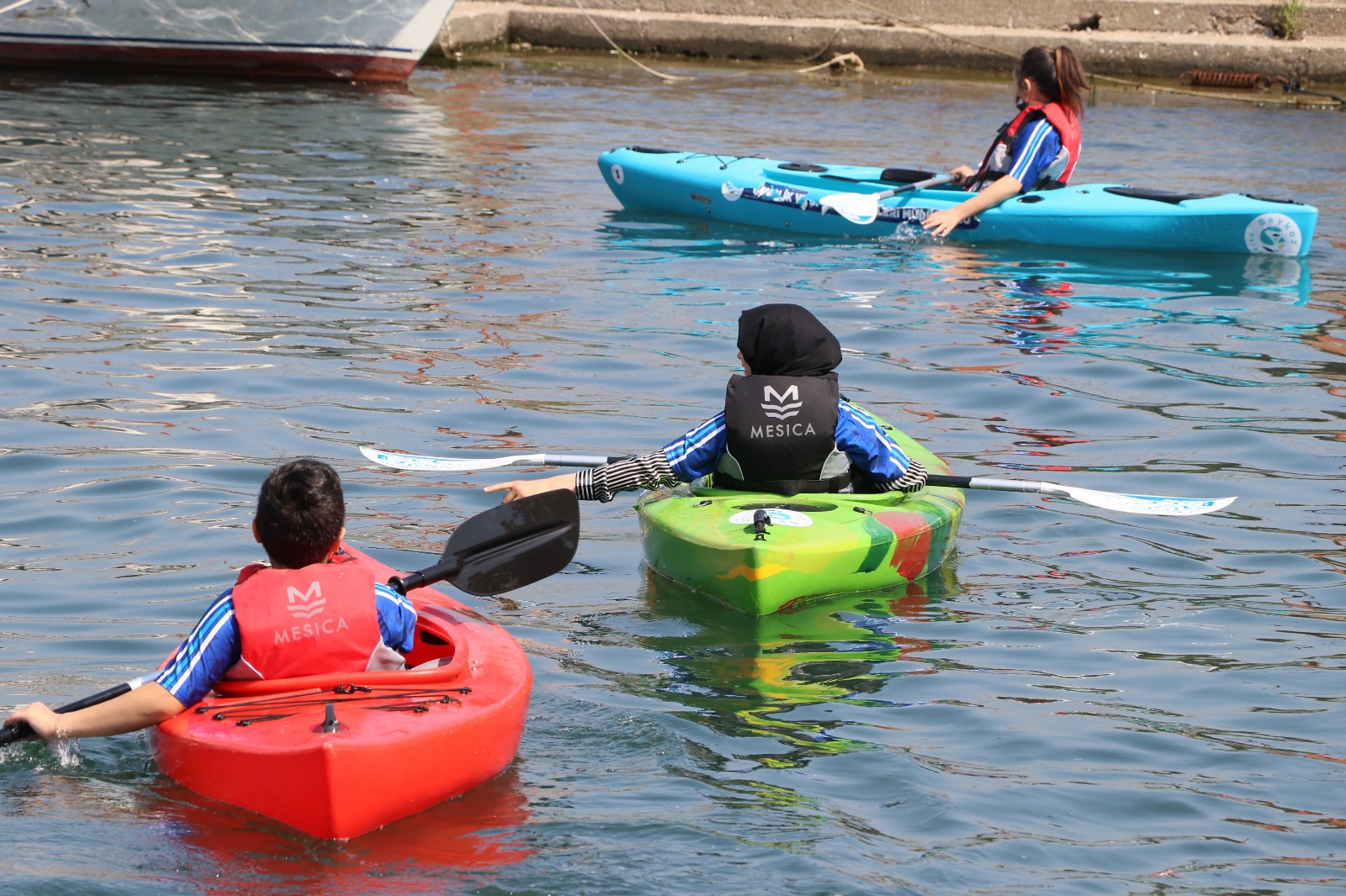 9-14 yaş arasındaki çocukların katılabildiği kurslar hafta içi her gün ısınma ve antrenmanlarla başlıyor, eğitimler kapsamında kano, kürek gibi gerekli ekipmanlarla tanışan çocuklar antrenörleri eşliğinde denize açılıyor.