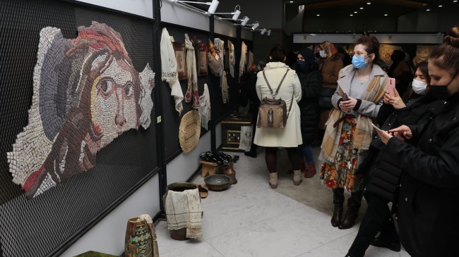 Anadolu’nun zengin kültür mirasından izler taşıyan yakma tablolar, tel kırma nakışlı örtüler, iğne oyalı başörtüleri, sepetler, deri çalışmaları, kıyafetler, gümüş kazaziye takılar, makrome duvar panoları ziyaretçiler tarafından ilgiyle gezildi.