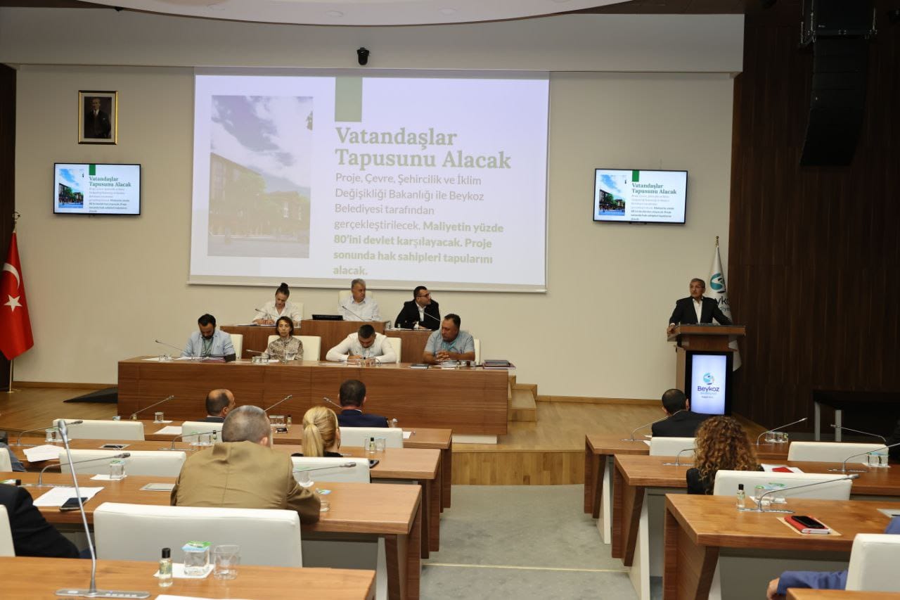 Beykoz Belediye Meclisi’nin Eylül Ayı ilk toplantısında ilçenin önemli gündem maddelerinden Tokatköy Kentsel Dönüşüm Projesi’yle ilgili kamuoyunu bilgilendiren Başkan Murat Aydın, Çevre Şehircilik Bakanlığı’yla başlattıkları projeyle sahadaki art niyetli ve siyasi girişimlere rağmen mahalle sakinlerinin 20 yıllık uygun ödeme koşullarıyla depreme dayanıklı konutlara ve tapularına kavuşacaklarını söyledi.