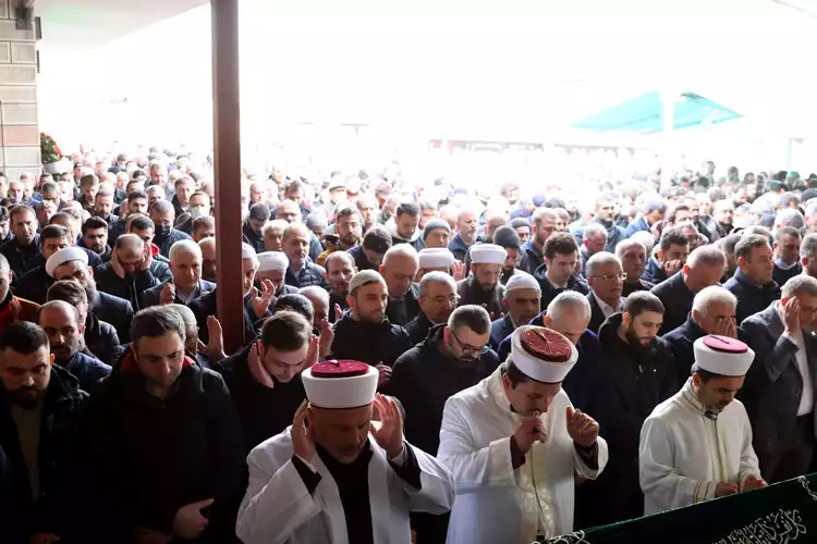 Cami avlusunda yer bulamayan vatandaşlar, cami içinde namaz kılmak zorunda kaldı. Cenaze namazının ardından ilk olarak eşi Osman Şimşek’in omuz verdiği tabut kalabalığın omuzlarında cenaze aracına kadar taşındı.