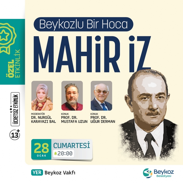 Beykoz Belediyesi tarafından, hayatını milli ve manevi değerler öncülüğünde insan yetiştirmeye vakfeden Mahir İz’i yakından tanımak ve tanıtmak üzere düzenlenen anma programında, Hoca’nın öğrencileri şahsi, edebi ve eğitimci yönlerini anlatacak ve öğretmenlik sevdası konuşulacak.