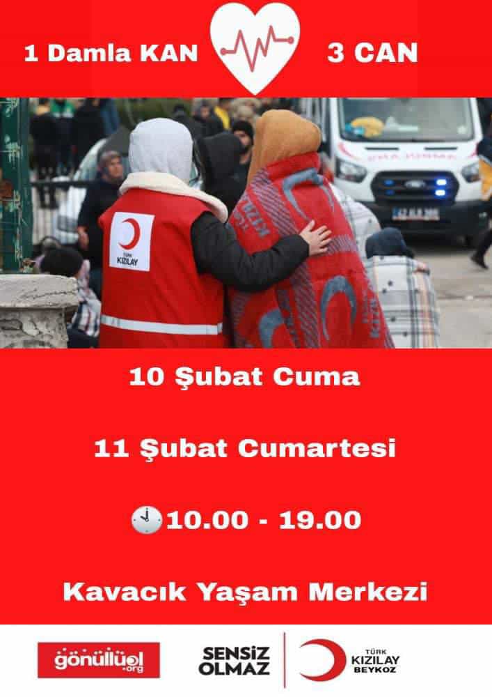 Beykoz Kaymakamlığı’ndan yapılan çağrıda, “Değerli Beykozlular; 10 ilimizi etkileyen deprem afeti sebebi ile 10 Şubat Cuma ve 11 Şubat Cumartesi 10:00-19:00 saatleri arası Beykoz Kavacık Yaşam Merkezinde kan bağışında bulunmaya davet ediyoruz.” ifadeleri kullanıldı.