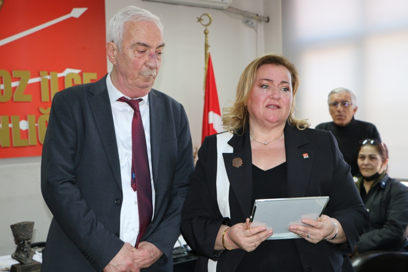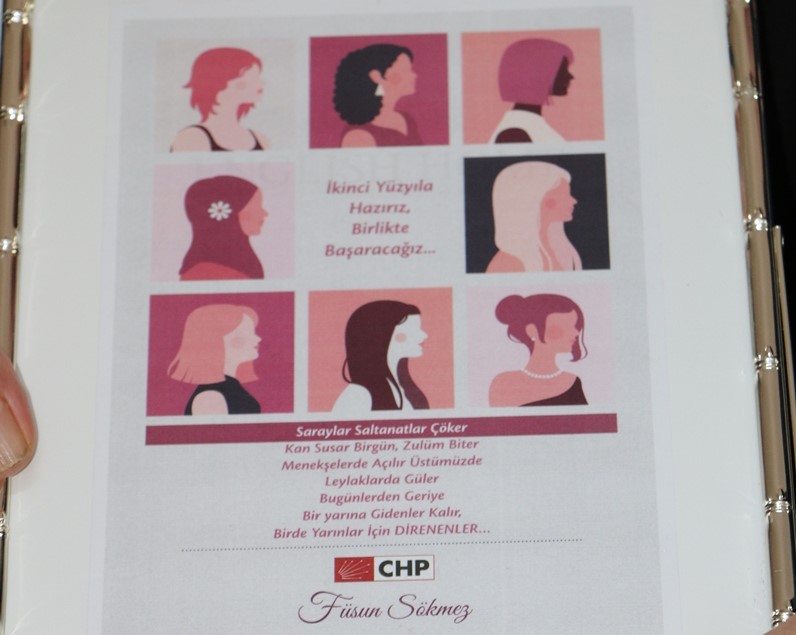CHP İstanbul 1. Bölge Milletvekili Aday Adayı Füsun Sökmez, Başkan Aydın Düzgün’ün konuşmasının ardından kendilerine ve de aday adaylık yolunda yanında olan oğlu Uras Sökmez’e, kardeşine ve tüm dostlarına teşekkür etti. Sökmez ‘Bizim aşkımız vatan aşkı, insan sevgisi, kadına, çocuğa, gence, herkese…” diyerek “Saraylar saltanatlar çöker, kan susar bir gün, zulüm biter. Menekşelerde açılır üstümüzde, leylaklar da güler. Bu günlerden geriye, bir yarına gidenler kalır, bir de yarınlar için direnenler.’ Dizelerinin yer aldığı bir tablo hediye etti.