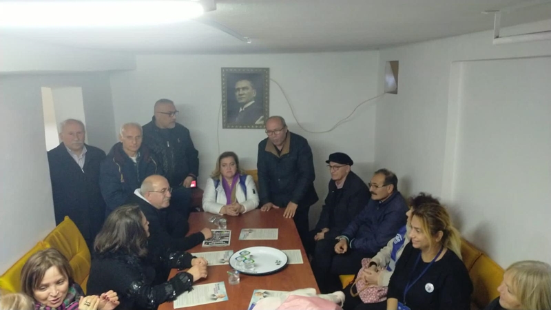 Tabloyu Başkan Aydın Düzgün’e hediye ederken Füsun Sökmez’in o anlarda duygusal anlar yaşaması ile dostları da duygulandı. Sökmez; “Eşimi (Ziya Sökmez) kaybettiğimde gençler bir pankart astı. Orada yazan satırlarda da ‘O iktidarın neresinde, hangi parçasında olursam olayım ben yürümeye devam edeceğim. Ama artık suçlamamız, daha direnmeniz gerekiyor çünkü içinde doğru olanlar, içinde iyilik olanlar gerçekten yarınlara direnenler iz bırakacaklar yürüsün. Dünden gelip küçük çıkarları yerine gelmediği için yol yürüyenler ya da rantı kendi için kullananlar değil, gerçekten yolu inananlar, güvenenler yürüsün. Bütün genel başkan yardımcılarım masasında duran bu sözler sizin de masanızda katılırsa çok mutlu olurum. Ben bir devrimcinin eşiyim. Bana birçok şey gösterildi, öğretildi. Onun yerinde kardeşim, oğlum ve de sizler varsınız.” dedi.