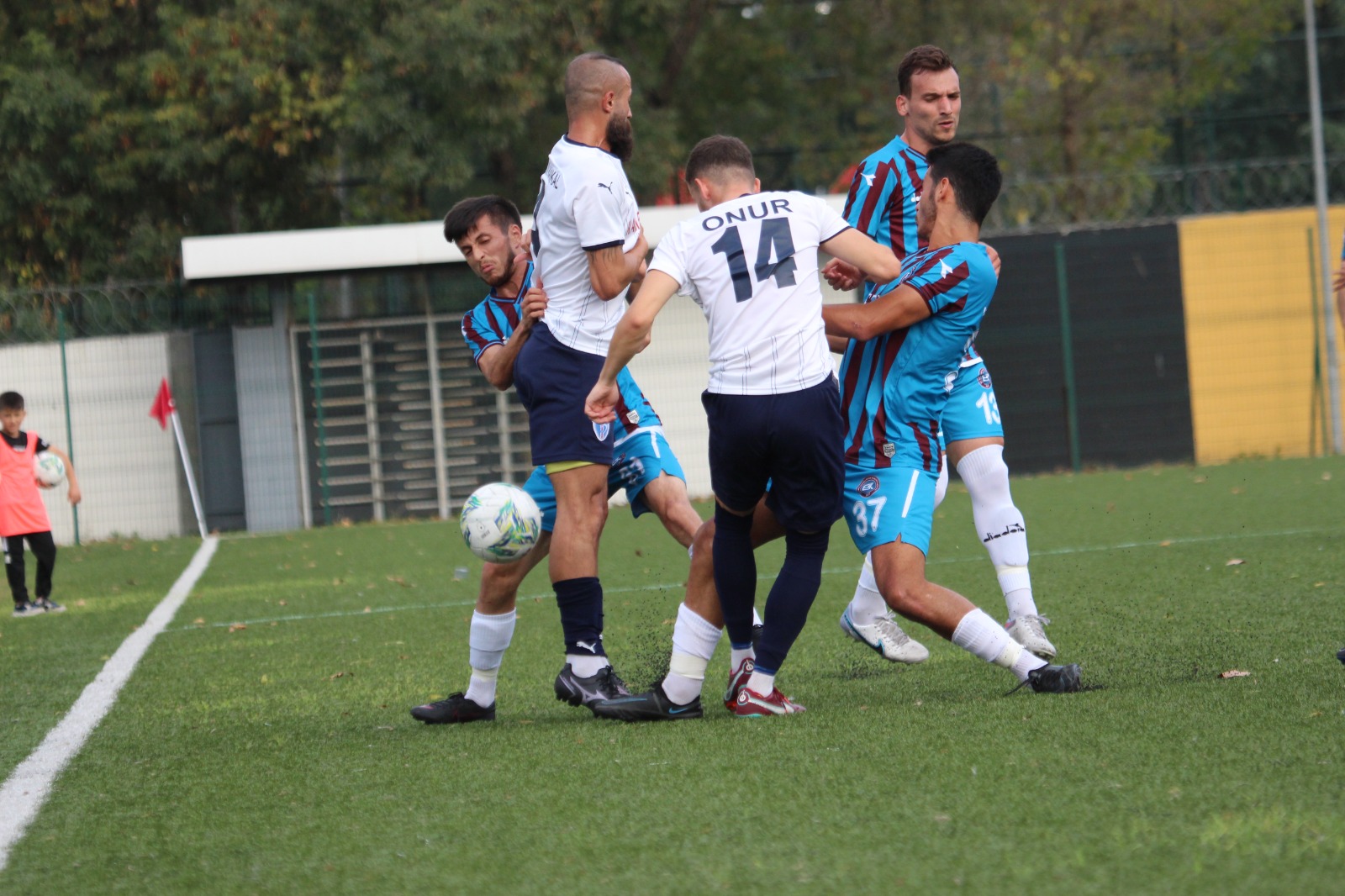 Dk.12 Sağdan bindirme yapan Onur Karavuş düşürüldü…ceza alanı çizgisinin 1 metre gerisinden çaprazdan atışı kullanan Türker Samet’ in vuruşunda top üstten auta çıktı