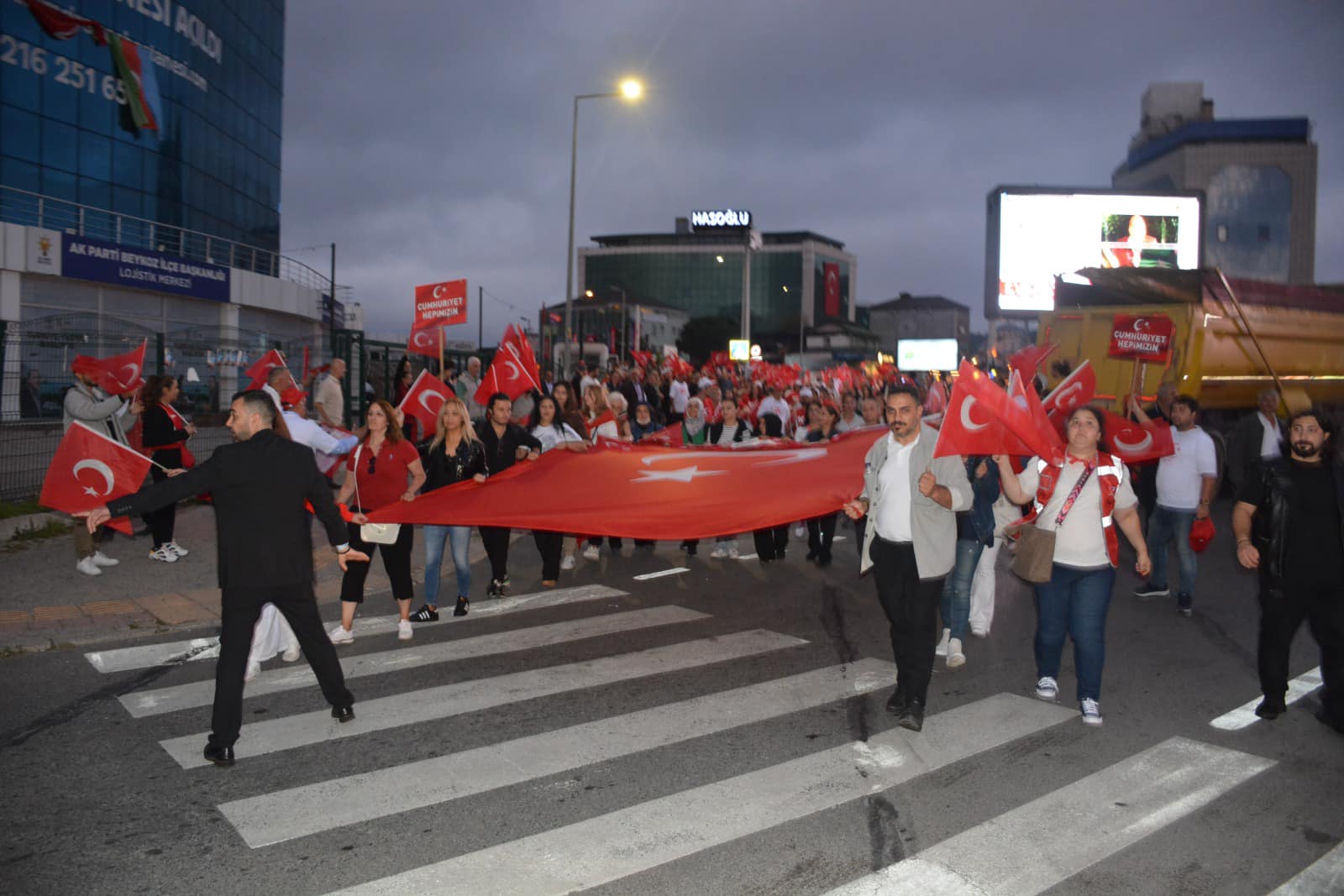 CHP Beykoz İlçe Başkanlığınca düzenlenen fener alayı yürüyüşü akşam saatlerinde Kavacık otobüs duraklarının bulunduğu noktadan başladı.