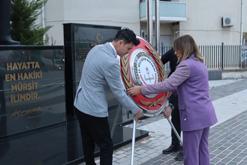 Atatürk Anıtına İlçe Milli Eğitim Müdürlüğünün çelenginin bırakılmasının ardından şehitler için saygı duruşunda bulunularak İstiklal Marşı okundu.
