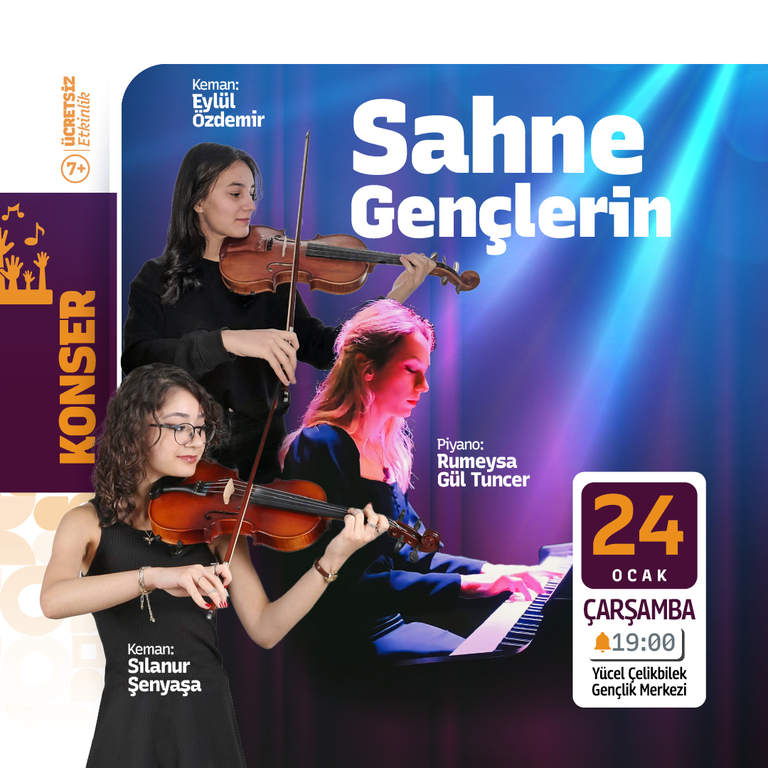 “Sahne Gençlerin” Programı’nda müzik dünyasına adım atan genç yetenekler Halk Müziği ve Klasik Müzik konserleriyle ilçe sakinleriyle buluşacak.
