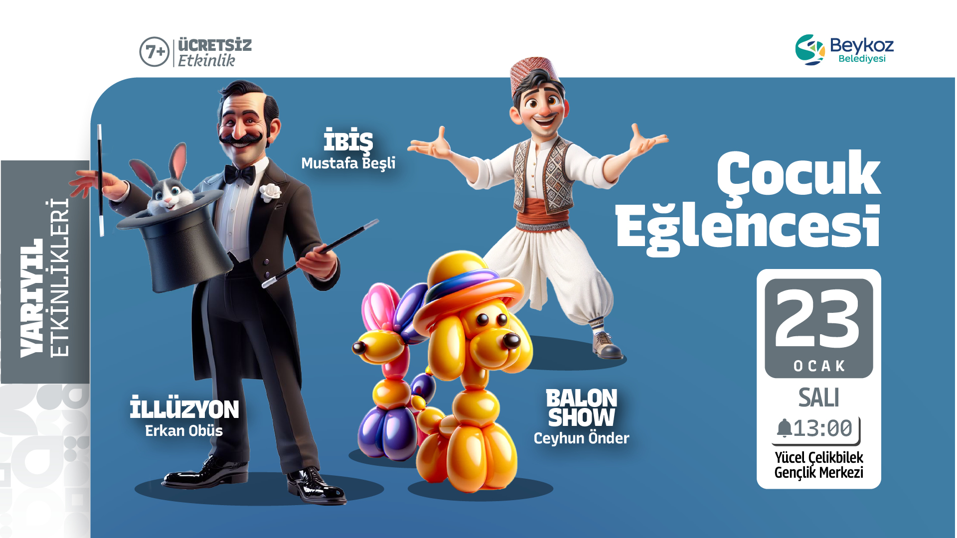 7 yaş ve üzeri çocuklara yönelik ücretsiz sahnelenecek “Çocuk Eğlenceleri” animatörlerin birbirinden renkli şovlarıyla gülmeyi garanti ediyor.