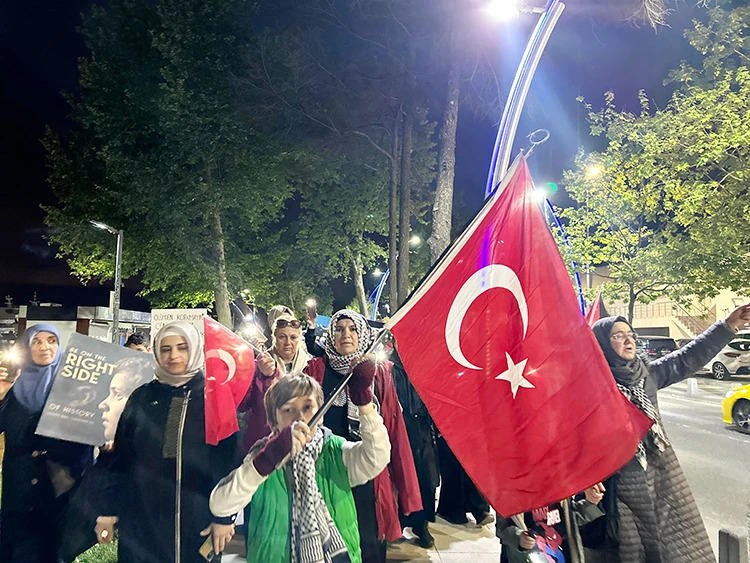 Gazze’de devam eden İsrail zulmü, soykırım ve işgali protesto etmek amacıyla Beykoz’da anlamlı bir yürüyüş yapıldı.Merve Safa Erbaş Likoğlu’nu öncülüğünde Yarenler Grubu olarak gerçekleştirilen “Beykozlu Hanımlarla Gazze için yürüyoruz” programına yaklaşık 500 kadın katıldı.Beykoz Meydanında Akşam Namazı sonrası toplanan grup ellerinde fener ve cep telefon ışıklarıyla Türk ve Filistin Bayrakları eşliğinde sessiz bir yürüyüş eylemi yaptı.Beykoz Merkez’den İncirköy’e kadar olan yürüyüş rotası boyunca gruba yeni katılımcılar eklenirken güzergâh boyunca yoldan geçen araçlardan destek kornaları geldi.Oldukça düzenli ve disiplinli yapılan ve hiçbir metresinde trafiğe etki etmeyen yürüyüş esnasında taşınan dövizlerde birbirinden anlamlı mesajlar objektiflere yansıdı. Yürüyüşte en ön ve son bölümde Beykoz İlçe Emniyet Müdürlüğü memurları gruba eşlik etti.İncirköy’den geri dönüş ile birlikte eski Şişe Cam Fabrikası Sahilinde Organizasyon Komitesi ve Yarenler Grubu adına Merve Safa Erbaş Likoğlu katılımcılara teşekkür ederek kısa bir konuşma yaptı.Aynı zamanda Diyanet İşleri Beykoz Vaizesi de olan Likoğlu, yaptığı konuşmada, “Geldiğiniz için Allah razı olsun… Önemli olan küçük küçük gruplar galinde bu eylemleri mahallelerde de yaparsak çok iyi olur. Büyük eylemler yaptık, Sultanahmet’te eylemler yaptık, başka yerlerde eylemler yaptık ancak, şurada ses çıkarmak çok önemliydi. Özellikle arkadaşlarımız sessiz seçmişler o da çok çok kıymetliydi.  Yani anne sessizliği gibi düşünebilirsiniz, yas gibi düşünebilirsiniz. Bu bizim yasımız, şu anda oraya gitmeye gücümüz yetmiyor. Burada onların yanında olduğumuzu gösterdik. Allah hepinizden razı olsun. Hedefimiz boykota devam etmek, sesimizi yükseltmeye devam etmek. Dünyanın her yerinde insanlar ses veriyorlar, biz de herkesi ses vermeye çağırıyoruz” şeklinde konuştu.