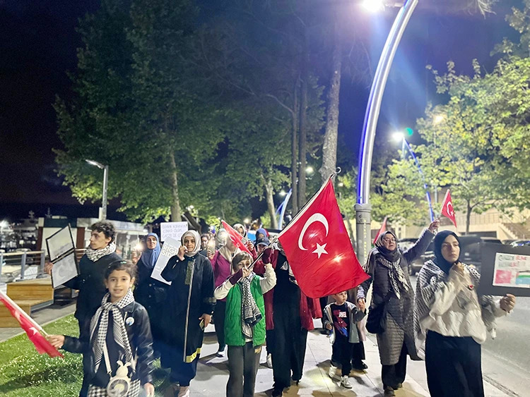 Gazze'de devam eden İsrail zulmü, soykırım ve işgali protesto etmek amacıyla Beykoz’da anlamlı bir yürüyüş yapıldı.