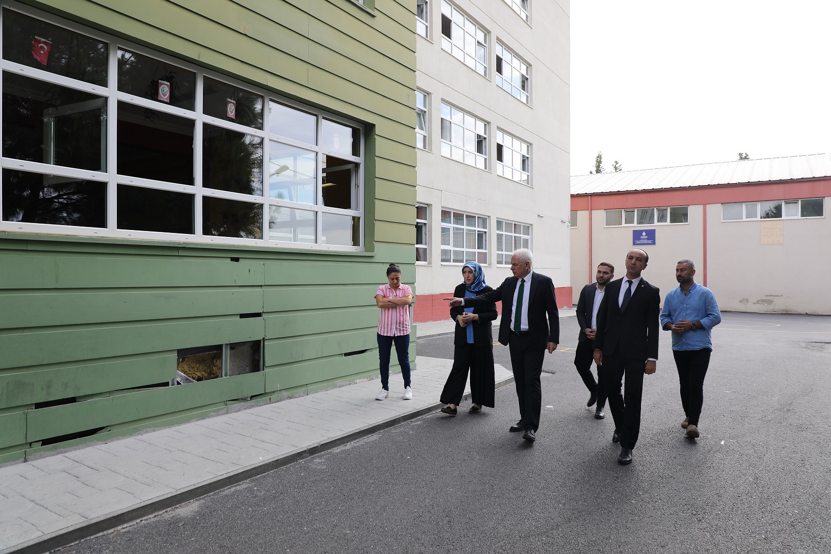 Okulun eksikleri ve sorunları inceleyen Köseler, Atatürk köşesinin eksikleri ile tahrip olan dış cephesinde düzenleme ve tadilat yapılacağını söyledi.