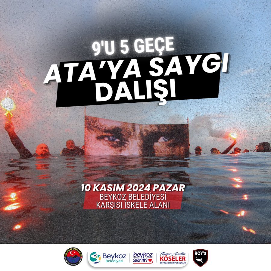 Bir çift mavi gözün ışığında, sonsuz minnet ve saygıyla Ulu Öderimiz Mustafa Kemal Atatürk’ü birlikte anıyoruz; 10 Kasım’da saat dokuzu beş geçe, Beykoz sahilde “Ata’ya Saygı Dalışı” gerçekleştiriyoruz.
