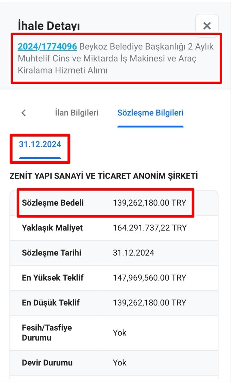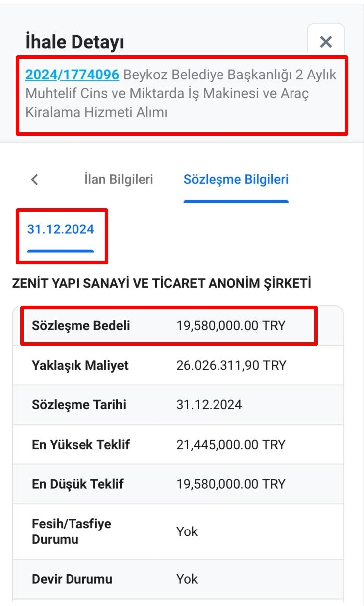 Söz konusu ihale haberinin vuku bulduğu tarihte, Özlem Vural Gürzel’in Beykoz Belediye Başkan Vekili olmadığı netlik kazandı. İncelemelere göre habere konu olan ihale, 31 Aralık 2024 tarihinde yapılmış ve aynı tarihte sözleşmeye bağlanmıştı.