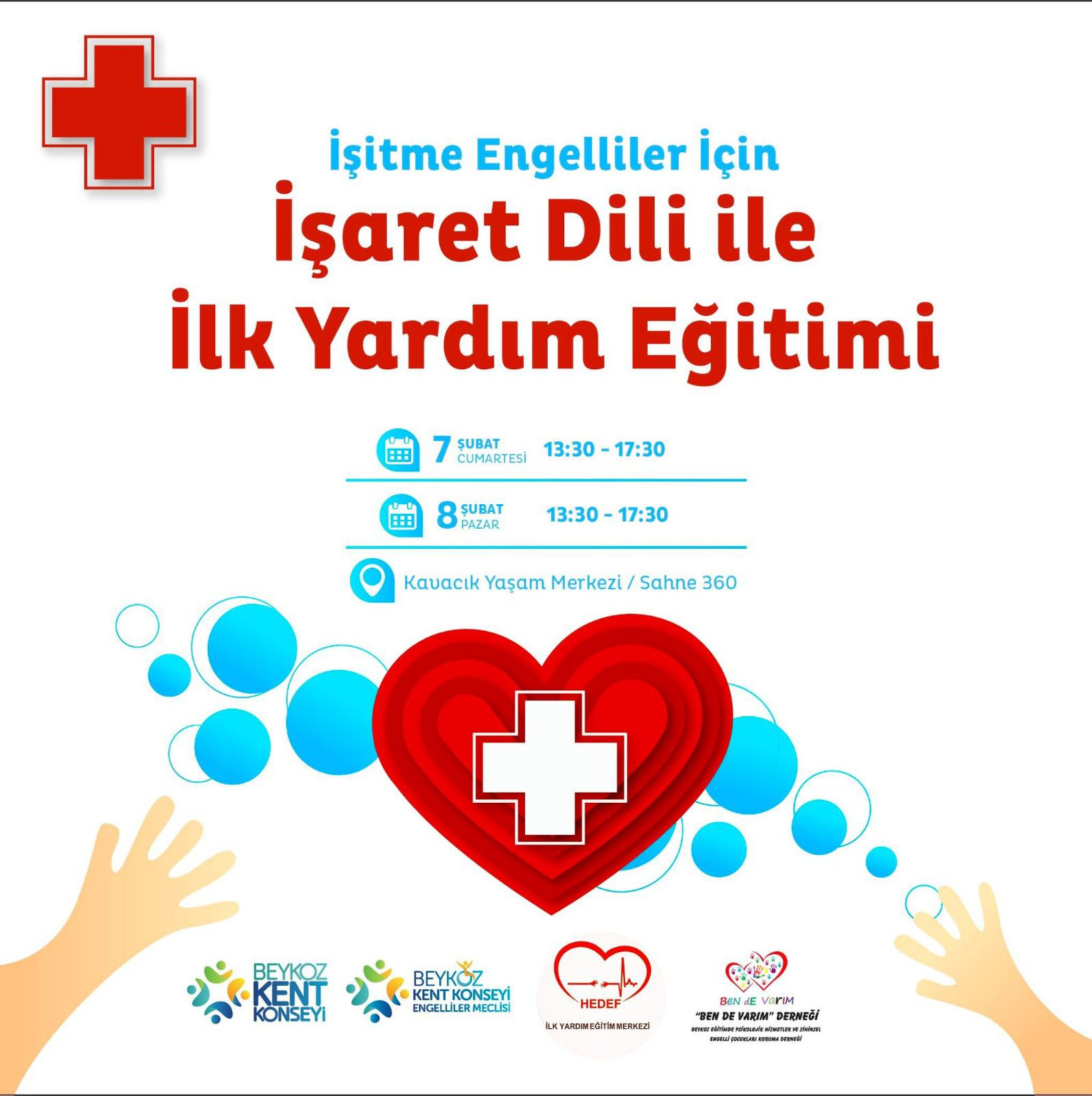 Beykoz Kent Konseyi Engelli Meclisi ile Bende Varım Engelliler Derneği iş birliğinde düzenlenen ilk yardım eğitimi, 7–8 Şubat tarihlerinde saat 13.30 ile 17.30 arasında, eski adıyla Kavacık Yaşam Merkezi olan Beykoz Kültür Merkezi Sahne360’ta yapılacak.