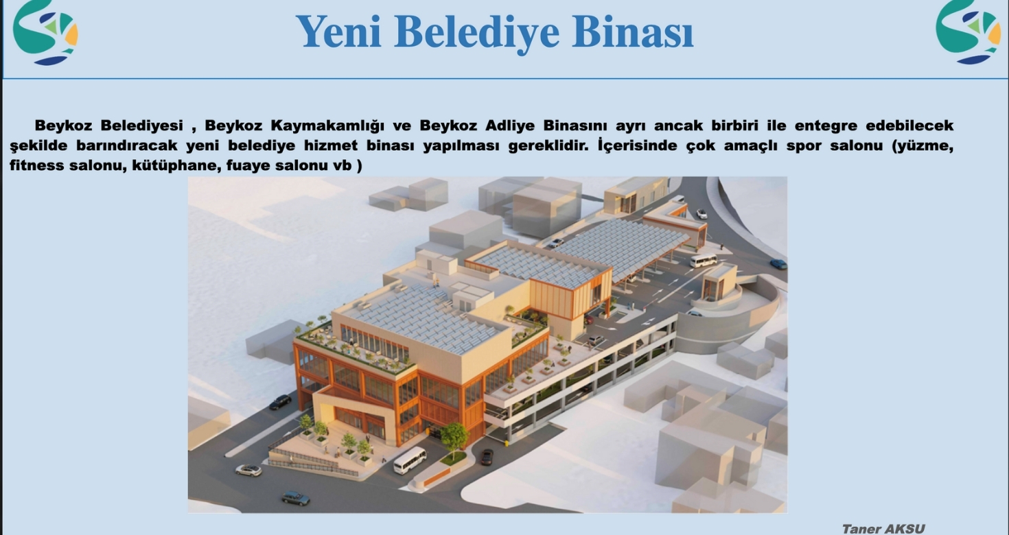 Beykoz Belediyesi, Kaymakamlık ve Adliye’yi entegre edecek yeni bir hizmet binası öneren Aksu, bu yapı içerisinde spor salonları, yüzme havuzları, kütüphaneler ve sosyal alanlar bulunabileceğini söyledi.