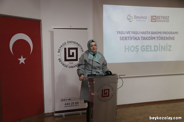 Beykoz Belediyesi ve Beykoz Üniversitesi iş birliği ile gerçekleştirilen ‘Yaşlı ve Yaşlı Hasta Bakımı Programı’nın Sertifika Töreni, Beykoz Üniversitesi Kavacık Rektörlük Yerleşkesi Konferans Salonu’nda yapıldı. Törene, AK Parti Genel Başkan Yardımcısı, AK Parti İstanbul Milletvekili, Aile ve Sosyal Politikalar Eski Bakanı Fatma Betül Sayan Kaya, Beykoz Belediye Başkanı Yücel Çelikbilek, Beykoz Üniversitesi Rektörü Prof. Dr. Mehmet Durman ile kursiyerler ve öğrenciler katıldı.
