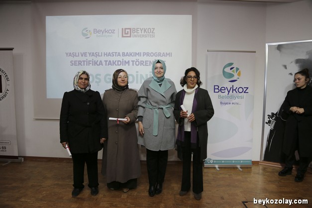 Beykoz Belediyesi ve Beykoz Üniversitesi iş birliği ile gerçekleştirilen ‘Yaşlı ve Yaşlı Hasta Bakımı Programı’nın başarılı kursiyerleri AK Parti Genel Başkan Yardımcısı Fatma Betül Sayan Kaya ve Beykoz Belediye Başkanı Yücel Çelikbilek’in katılımıyla gerçekleştirilen törenle sertifikalarını aldı.