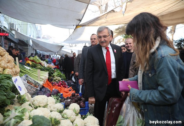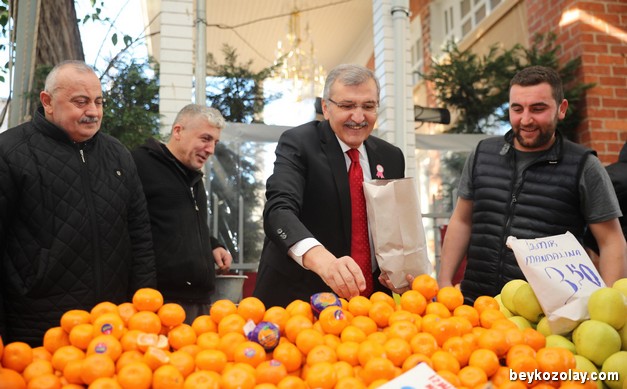 Öte yandan Başkan Aydın pazar esnafını ziyaret ettiği esnada meyve satan bir tezgaha da uğradı. Burada esnaf tarafından ilgiyle karşılanan Aydın, tezgahın başına geçerek kese kağıdına mandalina doldurdu. Vatandaşların, “en iyileri olsun Başkanım” sözleri üzerine gülüşmeler yaşanırken, kağıdı dolduran Aydın ardından tartıda tartarak verdi. Pazarcı esnafının yüzünün güldüğü ziyarette, Aydın vatandaşlardan tam not aldı.