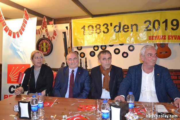 Aydın Düzgün’den sonra alkışlarla kürsüye gelen CHP Beykoz Belediye Başkan Adayı Coşkun Tosun ise “Buradaki yoğun katılım ve coşku gösteriyor ki, Beykoz’da değişim artık kaçınılmazdır. Bunu hepinizin gözlerinde görüyorum. Bunu 3 gündür sürdürdüğümüz saha çalışmalarında insanlarımızın bize olan teveccühünden anlıyorum. Değerli dostlar, Eyvah Grubu’nun davetine koşa koşa geleceğimi kendilerine söylemiştim ancak böylesi büyük bir katılımın olacağını inanın düşünmemiştim. Kendilerine çok teşekkür ediyorum. Evet, çok yoğun bir süreçteyiz, ama yorulduk deme imkânımız yok. Durmadan çalışacağız. Şartlar ne olursa çalışacağız. 250 bin insanın umudu bizim üzerimizde.” dedi.Tosun sözlerini şöyle sürdürdü: “İnsanlar Beykoz’da geçmişte mutluydu. Belli bir ekonomileri vardı, fabrikaları vardı, ona bağlı atölyeleri vardı, oralarda çalışan binlerce insan vardı ve Beykoz’da dönen büyük bir ticari yapı vardı. İnsanlar yeşil bir çevrede, mavi bir deniz kenarında hayatını sürdürürlerdi. Ve bunu da çocuklarına miras olarak bırakırlardı. Ama şimdi maalesef endişeler hâkim Beykoz’da. Beykoz perişan, Beykoz mahvolmuş durumda. Bunu Beykoz’dan çıkıp diğer ilçelere gittiğinizde anlıyorsunuz. Beykoz’un savaştan çıkmış, terk edilmiş bir ilçe olduğunu görüyorsunuz. Değerli arkadaşlar bunların sorumlusu iktidardır. Ama biz bunu değiştireceğiz. Hep birlikte çok çalışıp yapacağız bunu. Beykoz’un ormanlarına göz diken o büyük güçlere teslim olmayacağız. Beykoz’u yeniden canlandırmadan, Beykoz’da yaşamı yeniden şekillendirmeden, Beykoz insanını yeniden eğitmeden bunları başarmamızın imkânı yok”“BEYKOZ ÜZERİNDE GİZLİ PLANLAR VAR”