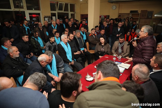 “Belediye olarak o potansiyeli harekete geçirmemiz gerekiyor. Biz bunu planlıyoruz. Sorunlarınızın giderilmesiyle ilgili çalışma sözü veriyoruz. Sorunların belki hepsini çözemeyebiliriz ama neden çözülemediği noktasında sizlere gerekçelerimizi de sunarız. Gençlerimiz, çocuklarımız ve kadınlarımızla ilgili çalışmalar yapacağız. Çocuklarımızın ev ve okul dışında vakit geçirebileceği, bilgiye ulaşabilecekleri ‘Bilgi Evleri’ yapacağız. Gençlerimizin, yetişkin kardeşlerimizin bilgiye ulaşabilecekleri, 24 saat açık olan, kıraathaneler, millet kütüphaneleri yapacağız. Kadınlarımızın ve erkeklerin kültür sanat ve meslek edinme ile ilgili faaliyetlerini gerçekleştirebilecekleri, sosyalleşme imkanı bulacakları kültür merkezlerimiz olacak” şeklinde konuştu.