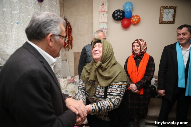 31 Mart Yerel Seçimleri kapsamında ilçeyi karış karış gezen ve her akşam mahallelerde vatandaşlarla buluşan AK Parti Beykoz Belediye Başkan adayı Murat Aydın, Elmalı’da vatandaşlarla mahalle buluşması gerçekleştirdi. Buluşma öncesi kendisini dışarıda karşılayan vatandaşlarla tokalaşan Aydın’a evinin penceresinden seslenen 61 yaşındaki Emine Kansız, çaya davet etti. Programdan sonra gelme sözü veren Aydın, buluşma biter bitmez Emine teyzenin evine gitti. Başkan adayı Aydın’ı karşısında görünce sevinç gözyaşlarına boğulan kadının, “İnşallah yüzümüzü güldürürsün, rabbimden dileğim Beykoz’da sonsuza kadar kalasın” demesi Aydın’ı da duygulandırdı.