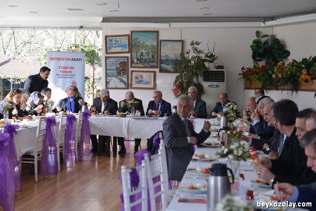 31 Mart yerel seçimlerine 24 gün kala hız kesmeden çalışmalarına devam eden Cumhuriyet Halk Partisi Belediye Başkan Adayı Coşkun Tosun, muhtarlarla bir araya geldi. Paşabahçe Stadyumu’nun hemen yanındaki Pasha Garden’da düzenlenen kahvaltılı buluşmaya, muhtarların yoğun katılım sağladığı gözlerden kaçmadı.Yapılan kahvaltının ardından ilk sözü Beykoz Muhtarlar Derneği Başkanı Hüsnü Kolcu aldı. Organizasyondan ötürü duyduğu memnuniyeti dile getiren Kolcu, Coşkun Tosun’a hitaben bir mani okuduktan sonra “Sizi çok eskiden beri tanıyan, bilen, güvenen biri olarak çıktığınız bu yolda başarılar diliyorum. Ancak küçük bir serzenişim olacak. Keşke listenizde sadece İncirköy Muhtarım Şefik Yavuz Yılmaz dışında da birkaç muhtar arkadaşımız daha olsaydı. Çünkü Beykoz’un sorunlarını en iyi muhtarlar bilir” dedi.AYDIN DÜZGÜN: “BİR DAHA İLAN EDİYORUM, ADAYIMIZIN YANINDAYIZ”