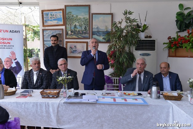 Daha sonra söz alan CHP Beykoz İlçe Başkanı Aydın Düzgün ise “Sevgili muhtarlarım, öncelikle hoş geldiniz diyorum. Az önce konuşan Hüsnü Başkanım daha önce çok mani okumuştu ama ilk kez bizim için okuduğuna göre bu iş artık tamam demektir.  Bizim muhtarlara ve kurumsal yapınıza ne kadar çok değer verdiğimizi yine en iyi sizler biliyorsunuz. Sizlerin elini güçlendirmek için pek çok plan ve projemiz var. Bunları birazdan Coşkun Başkanım zaten sizlere aktaracaktır. Ama ben başka bir şeye değinmek istiyorum. Medyada bazı haberler dolaşıyor. Güya Aydın Düzgün, ısrarla başkanın yanında olmayarak ona zarar veriyormuş… Bakın arkadaşlar, anlamayanlar için buradan bir kere daha ilan ediyorum. Biz Cumhuriyet Halk Partisi İlçe Örgütü olarak bir bütün halinde adayımızın sonuna dek yanındayız. Zaten başkanımda bunu gündeme getirenlere çok güzel bir espriyle yanıt vermiş. Demiş ki, ‘Kardeşim ben zaten buralıyım. Buraları dolaşmak için Aydın Düzgün’ün elimden tutup dolaştırmasına ihtiyacım yok. Biz gerektiğinde zaten yan yana geliyoruz. Ama Zeytinburnu’ndan gelen Murat Aydın haliyle buraları bilmiyor. Hanefi Başkan yanında olmasa kaybolur, denize düşer.’ diye takılmış. Dolayısıyla kimse bu durumlardan bir fayda çıkarmasın diyorum ve sözü başkan adayımız Coşkun Tosun’a devrediyorum.” dedi.COŞKUN TOSUN: “MUHTARLARIN OY HAKKI OLACAK”