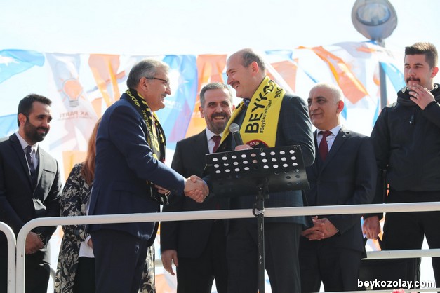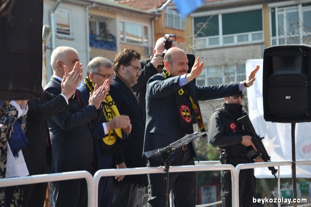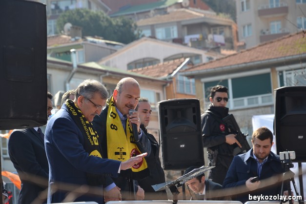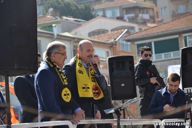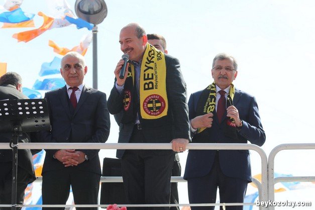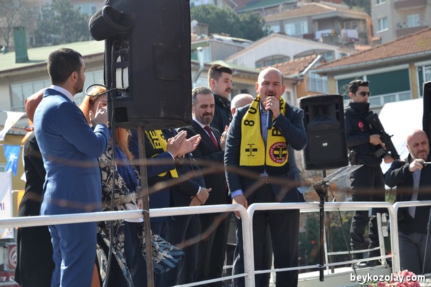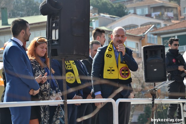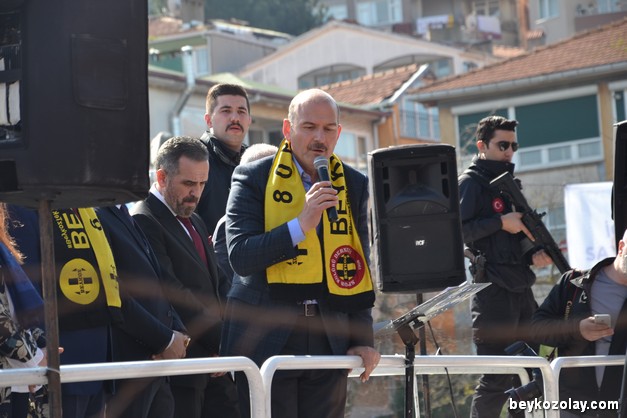 Bakan Soylu, “Yıllardan beri bunlar başımızda boza pişirdi. Siz iktidar olursunuz ama muktedir olamazsınız dediler. Onlar tehdit etmelerine rağmen Beykozlular olarak cevap verdiniz hem muktedir hem iktidarsınız dediniz. 6-7 Ekim, 15 Temmuz olayları 6-7 yıl arasında bize patinaj yaptırmak için ellerinden geleni yaptılar. Biz potansiyeli güçlü olan bir ülkeyiz. Bütün bunlara rağmen büyük mücadeleleri ortaya koyuyor. Milletle beraber geleceğe doğru ilerliyoruz. Bir taraftan terörle mücadele ediyoruz. Şimdi bana kızıyorlar, çok sert konuşuyormuşum. Ben PKK’nın milletvekillerine vekil demem. Onlar bu milletin değil terörün vekilidir. HDP’nin siyasi temsilci sırtımızı PKK’ya dayadık dedi. Şimdi git 4 duvara daya. Aponun serbest bırakılması için yürüyüş yapacaklarmış. Ben de dedim ki, “Ulan sizi yürüten adam değildir.” Diyarbakır’a Erdoğan gidecek ya, HDP’liler böyle grev falan yaptılar. Polisimiz bariyerleri şak diye aldı onları çuvalına içine soktuk. DHKP-C operasyonu Türkiye’de yapıldı. Türkiye sorumlusunu aldık, 8 kişiyi paket ettik” ifadelerini kullandı.