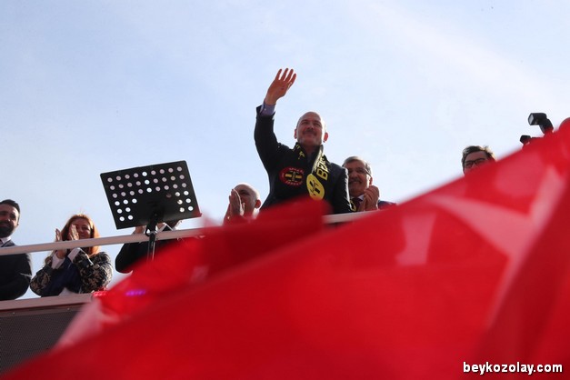Bakan Soylu, “İstanbul ile Ankara’ya torpil geçiyoruz. 5 bin polis ve bin bekçi veriyoruz. İstanbul’un en huzurlu ve güvenli şehri haline geliyor. Ülkemizin her tarafında güvenliği üst tarafta çıkartmak için bunu yapıyoruz. Bakın biz mafya falan anlamayız. 275 çete liderini 2018’de çökerttik. İyi bir mücadele ortaya koyuyoruz. Bu dik duruş karakterimiz, kişilik, cesaretten değildir. 50 gramlık oy pusulası bizi dik yapıyor. Bizden desteğinizi esirgemeyin” diye konuştu.