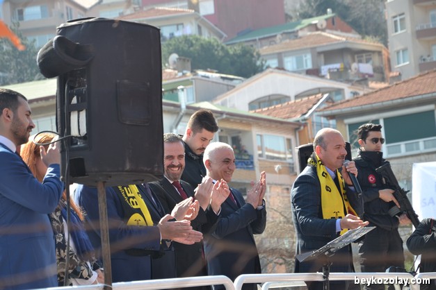 31 Mart Yerel Seçimleri kapsamında çalışmalar devam ederken İçişleri Bakanı Süleyman Soylu’da bugün İstanbul temasları kapsamında Beykoz’a geldi. Kavacık’taki programın ardından Paşabahçe’ye gelen Soylu burada düzenlenen mitingde vatandaşlara seslendi. Mitinge Bakan Soylu’nun yanı sıra AK Parti Beykoz Belediye Başkan Adayı Murat Aydın, İlçe Başkanı Hanefi Dilmaç, partililer ve vatandaşlar katıldı. Mitinge bir konuşma yapan Bakan Soylu, “Türkiye’de İHA yaptırmamak için 50 türlü tezgah işlediler. Biz kuvvetli olmayalım diye yaptılar. 100 milyar dolarlık yatırım yapılacaktı. Erdoğan’a ültimatom verdiler. Avrasya’yı, Yavuz Sultan Selim’i yapamazsınız dediler yaptık mı? Yaptık. Marmaray’ı yapamazsın dediler, yaptık. Osmangazi Köprüsünü yaptık. 3. Havalimanını bizden izin almadan yapamazsınız dediler. Oh yaptık. Şehir hastaneleri, trenler, barajlar, üniversite yapamazsınız dediler. Onlara inat yaptık mı? Yaptık” dedi.