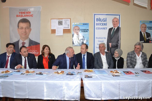 Daha sonra söz alan CHP Belediye Başkan Adayı Coşkun Tosun, bu ortamı sağlayanlara teşekkür ettikten sonra, “Sayın vekilim bizim ve tüm Beykoz’un ağabeyidir. Biliyorsunuz ben de defalarca Çavuşbaşı’nı ziyaret ettim. Ama bundan sonra daha da çok buralarda olacağız. Beykoz’un çok fazla sorunları var. Ama imar ve plan sorunu içlerinde en büyüğü. Biz bugün 41 projenin sunumunu yaptık. Çavuşbaşı’nda kimse meraklanmasın. Beykoz için tüm sorunlara çözüm projelerimiz var. Bize yıllardır bahaneler üretenler, artık koltuğu devretmek üzereler. Biz bir AR-GE ekibi kurduk. Birbirinden değerli isimlerle müthiş çalışmalar yapıyoruz aylardır. Onlara da buradan çok teşekkür etmek istiyorum. Ben Beykoz için taşın altına elimi değil gövdemi koydum. “