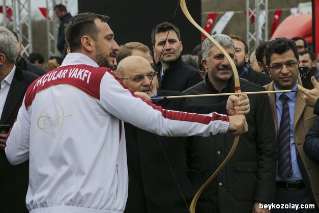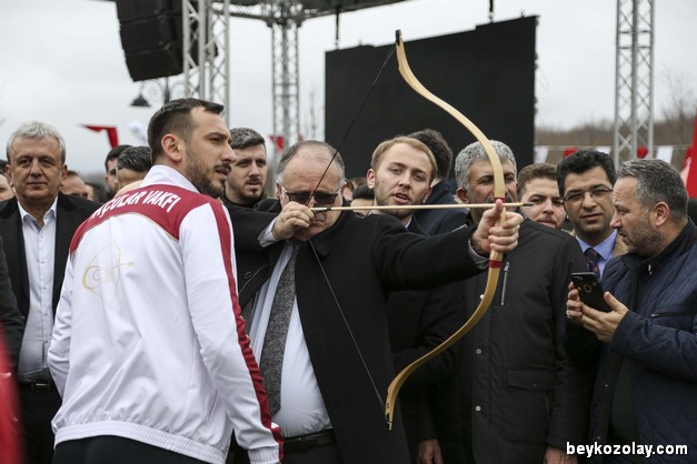 Okçular Vakfı Mütevelli Heyeti üyesi Necmettin Bilal Erdoğan yaptığı konuşmada; “İlim Yayma Vakfı’nda da beraber çalıştığımız Beykoz Belediye Başkanımız Yücel Çelikbilek, Beykoz Belediyemizin bu en güzel eserini bizlere açmak istediklerini söylediğinde biz de Okçular vakfı olarak bu hizmetin içinde yer aldık. Burası Beykozluların ailece piknik yapıp oyun oynayabilecekleri güzel bir mekân, biz de vakıf olarak buraya örnek bir çalışma olan okçuluk değerini kattık. Bence diğer belediyelere de örnek olan bu çalışmada spor kulüpleri ve STK’ların da desteği paydaşlığı olmalı. Türkiye’de böyle önemli bir merkez yok. Okmeydanı’ndaki Okçular Tekkesi dışında okçuluğa hasredilmiş böyle bir mekân yok. İBB’nin de desteğiyle burası insanların okçulukla buluştuğu ilk akla gelen merkezlerden olacak. Yazın yapacağımız birçok okçuluk etkinliğini yarışmalarını gerçekleştireceğiz. Hem de gençlerimizin olimpik, geleneksel ve makaralı yay okçuluğuyla tanışmalarını sağlayacağız. Okçuluk bizim ata sporumuz. Ecdadımız doğal materyallerle en yaman okçularımızdı. Bu yüzden geçmişten alacağımız ilhamla geleneksel sporlarımızla geleceğe hazırlanmalıyız. Bu güzel tesise emek veren Belediye Başkanı Yücel Çelikbilek’e teşekkür ediyorum.” dedi.