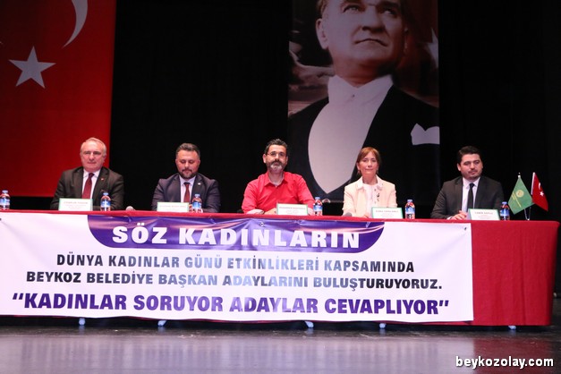 Ahmet Mithat Efendi Kültür Merkezinde Kadınlar Günü etkinlikleri kapsamında düzenlenen toplantıya CHP Beykoz Belediye Başkan Adayı Coşkun Tosun, İYİ Parti Beykoz Belediye Başkan Adayı Bilgehan Murat Miniç, Saadet Partisi Beykoz Belediye Başkan Adayı Muharrem Kaşıtoğlu, Beykoz’un tek kadın adaylarından Vatan Partisi Beykoz Belediye Başkan Adayı Esra İspalarlı ve Bağımsız Beykoz Adayı Cabir Soylu katıldı. AK Parti Beykoz Belediye Başkan Adayı Murat Aydın önceden planlanmış başka bir toplantısı olduğu için katılamadı.