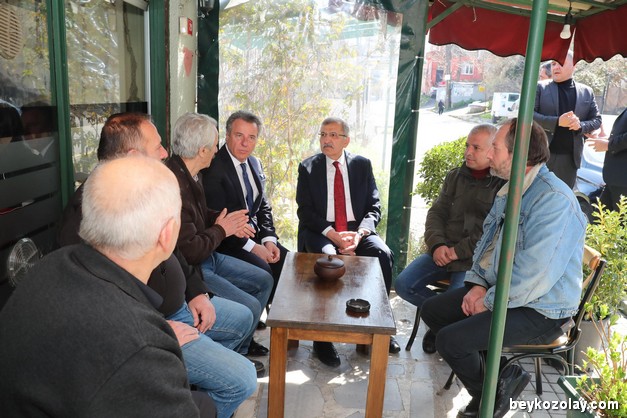 Burada oturan vatandaşlarla uzun uzun sohbet eden Başkan adayı Aydın, onlarla tokalaştıktan sonra sohbet ederek sorunlarını dinledi.