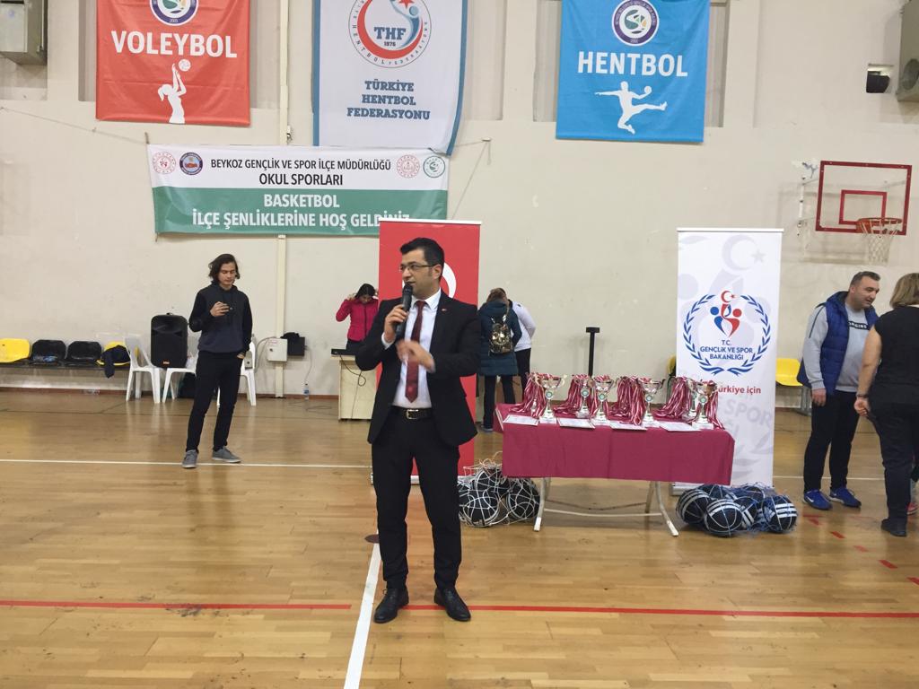 Boğaziçi Anadolu İmam Hatip Lisesinde 4 Mart’ta başlayan basketbol şenliği ödül töreni R. Şahin Köktürk Spor Salonunda gerçekleşti. Başarılı takımlara kupa ve madalyalarının yanında basketbol topu hediye edildi.Ödül töreninde konuşan Beykoz Gençlik ve Spor İlçe Müdürü Bülent Küçük şunları dile getirdi: “2 hafta süren İlçe Basketbol Şenlikleri 4 kategoride 37 takım katıldı ve 344 öğrencimiz mücadele ettiği turnuvada birbirinden heyecanlı 37 maç oynandı. Bu maçları yöneten hakemlerimiz, ilçemizde görev yapan Beden Eğitimi Öğretmenleri ile Gençlik ve Spor İlçe Müdürlüğünde çalışan hakemler arasından seçildi. Herhangi bir maddi beklentileri olmaksızın görev alan hakem öğretmenlerimize, salonunu bize açan Boğaziçi Anadolu İmam Hatip Lisesi idaresine ve Beykoz Spor Kompleksi R.Şahin KÖKTÜRK Spor Salonu Yetkilerine, turnuvaya katılan tüm okullarımıza, beden eğitimi öğretmenlerimize,basketbol müsabakalarında dereceye giren tüm okullarımıza basketbol topu hediye eden Milli Takım Kaptanımız Rüştü Reçber’e ve geleceğimizin teminatı siz sevgili öğrencilerimize teşekkür eder, derece yapan okullarımızı kutlarım.”
