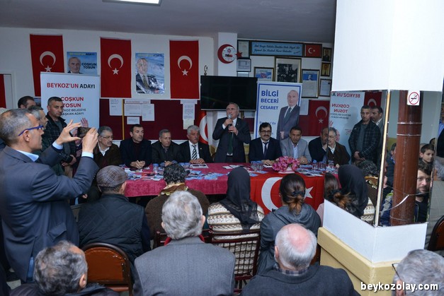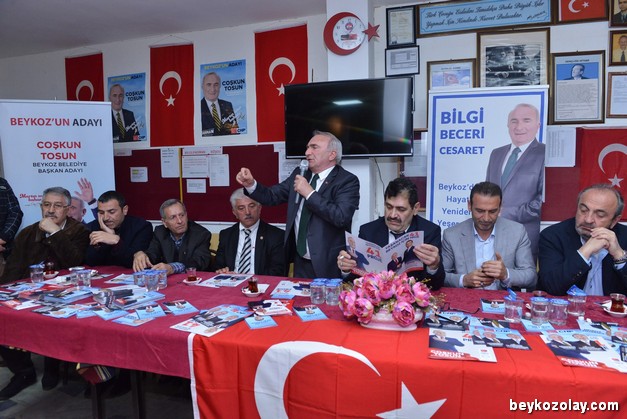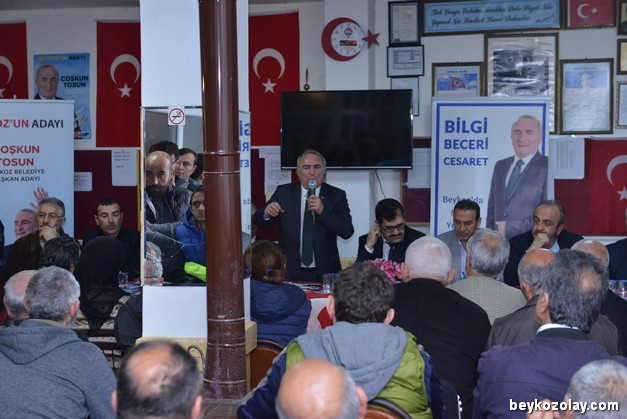 Coşkun Tosun’un yanı sıra pek çok Meclis Üyesi ve yeni dönem Meclis Üyesi Adayı da toplantıda hazır bulundu. Tosun, 31 Mart Seçimlerinin ardından 1 Nisan Sabahından itibaren Beykozluların ” Ohh deyip derin bir nefes alacağı ” iddiasında bulunurken, Beykoz’un mevcut konumuna da ilginç bir benzetmede bulundu ve ”Beykoz 30 sene öncesine dönmüş durumda, adeta terk edilmiş bir Suriye Kasabasına benziyor” dedi.