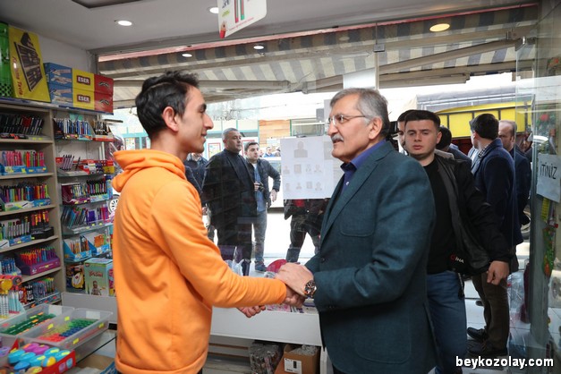 Ziyaretler esnasında bir iş yerine uğrayan Başkan adayı Aydın, alışveriş yapan yaşlı bir kadını görünce hemen yanına gitti. Kadının baktığı elbiseyi eline alan Aydın, kadınla elbisenin boyutu hakkında konuştuktan sonra esnafla pazarlığa girişti. Fiyatı 40 lira olan elbiseyi 35 liraya düşürten Başkan adayı Aydın, ardından satın aldığı elbiseyi kadına hediye etti. Hediye karşısında memnuniyetini dile getiren Aydın, daha sonra bir markete girerek kendisine ikram edilen tatlıyı yedi. Tokalaşmadık el bırakmayan Başkan adayı Aydın saatler sonra semtten ayrıldı.