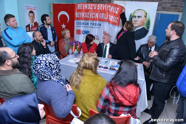 Belediye Meclis Üyesi Adayı Füsun Sökmez’in organize ettiği toplantıda, işitme engelli vatandaşlar yaşadıkları problemleri ve taleplerini tercüman aracılığıyla CHP Beykoz Başkan Adayı Coşkun Tosun’a aktardı. İşitme Engelliler Platformu mensubu vatandaşlar, kendilerine ait bir lokale ihtiyaçları olduğunu, kamusal işlerini halledebilecek için belediyede tercüman olması gerektiğini belirtti. Aralarındaki profesyonel sporcuların, antrenman yapabilmek için uzak ilçelere gitmek zorunda kaldığını söylediler.