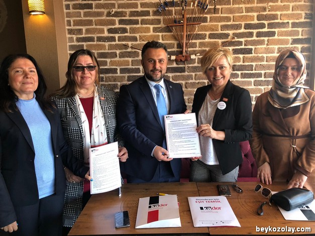Kadın Adayları Destekleme Derneği Genel Merkez Yerel Yönetimler ekibinden Sevilay Karapınar, Kadıköy Şube Yönetim Kurulu üyesi Filiz Yeniçeri ve Kadıköy Şube Başkanı Ruhan Küçük; Beykoz’da gerçekleşen görüşmede dernek olarak hazırladıkları ‘Kadın Dostu Kent” Taahhütnamesini Bilgehan Murat Miniç’e sundu.