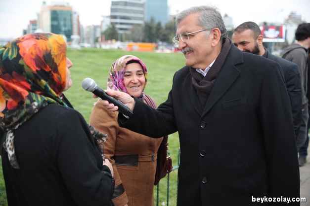 Kafeteryadan ayrılan Başkan adayı Aydın’ın karşısına Senegal uyruklu bir seyyar saat satıcısı çıktı. Çevredekiler tarafından bilinen satıcı yaptığı esprilerle vatandaşları güldürdü. Bunun üzerine Aydın, genç satıcıya “nerelisin” diye sordu. Senegalli gencin, “Giresun Bulancaklıyım” demesi üzerine çevredekiler kahkahaya boğuldu. Ardından gençle bir süre daha sohbet eden Başkan adayı Aydın, tezgâhından bir saat satın alarak yanındaki çocuğa hediye etti. Aydın’ın bu sıcak, samimi tavırları ve alçak gönüllülüğü vatandaşların bir kez daha gönlünü kazandı. Araç sürücüleriyle de tokalaşmayı ihmal etmeyen Aydın, kafeteryasından fatura ödeme merkezine, kuaföründen tamirhanesine, gezmedik yer bırakmadı.