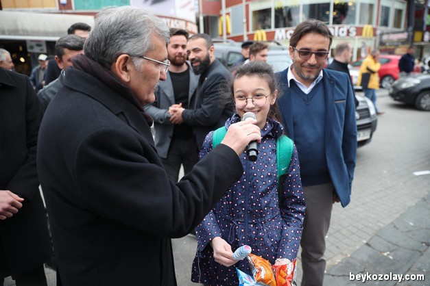 31 Mart Yerel Seçimleri’ne birkaç gün kala çalışmalarına hız kesmeden devam eden AK Parti Beykoz Belediye Başkan Adayı Murat Aydın, Rüzgarlıbahçe’de esnarı tek tek ziyaret etti. Eline mikrofonu alarak selamlama konuşması yapan Aydın, ardından yolda gördüğü vatandaşlarla sohbet etti. Onlara mikrofon uzatarak sorunlarını da dinleyen Başkan adayı Aydın, problemleri çözmek için elinden geleni yapacaklarını ifade etti. Yaşlısından gencine, engellisinden çocuğuna her kesimle konuşan Aydın, küçük çocukların ise ellerini öperek oyuncak hediye etti. Esnaflar ve vatandaşlar tarafından sıcak bir şekilde karşılanan Aydın’ın samimi tavırları gönülleri kazandı.
