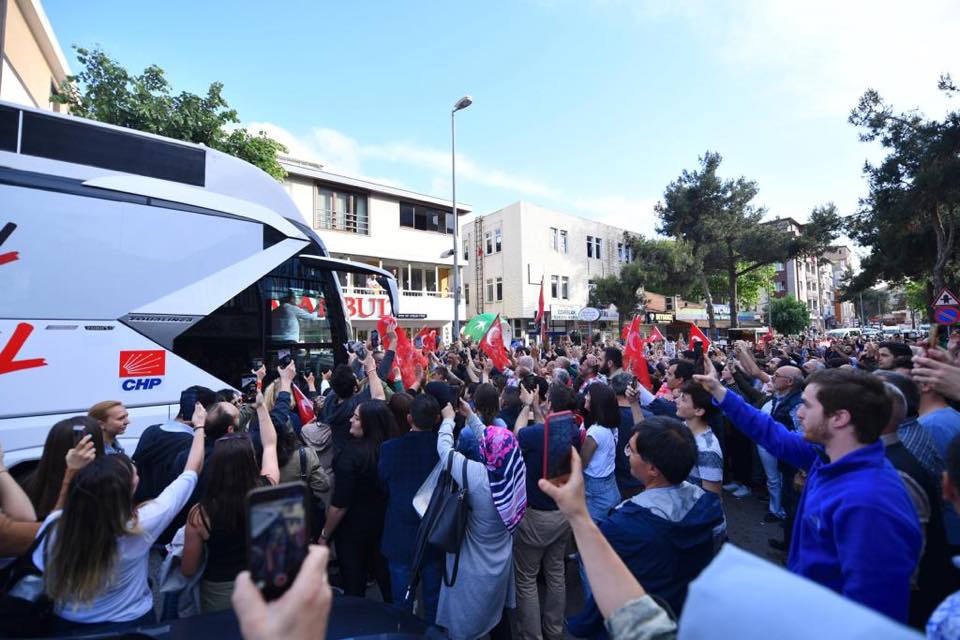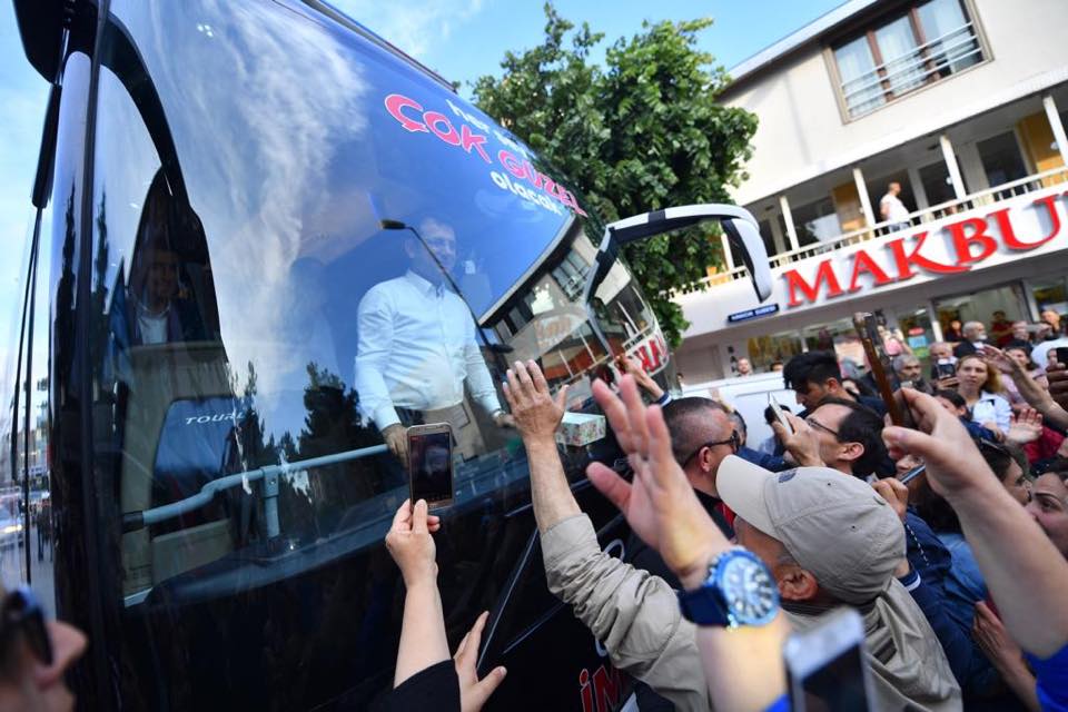 AK Parti’nin YSK’ya yaptığı itiraz sonucu, Ekrem İmamoğlu’nun İBB Başkanı seçildiği 31 Mart’ta yapılan Seçimlerin iptal edilmesinin ardından 23 Haziran’da tekrarlanacak İBB Başkanlığı seçimi için seçim otobüsü ile Beykoz’a gelen CHP Adayı İmamoğlu vatandaşları selamladı.