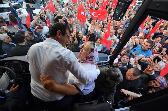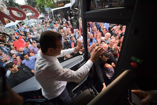 AK Parti’nin YSK’ya yaptığı itiraz sonucu, Ekrem İmamoğlu’nun İBB Başkanı seçildiği 31 Mart’ta yapılan Seçimlerin iptal edilmesinin ardından 23 Haziran’da tekrarlanacak İBB Başkanlığı seçimi için seçim otobüsü ile Beykoz’a gelen CHP Adayı Ekrem İmamoğlu’na vatandaşlar büyük ilgi gösterdi. Farklı noktalarda aracın önünü kesen vatandaşlar, İmamoğlu’na çiçek verip, seçim otobüsünün yollarına gül döktü. Vatandaşlar, boğaz boyunca ilerleyen seçim otobüsünün peşinden kilometrelerce koştu. Yolunu kesen vatandaşlara kısa konuşmalar yapan İmamoğlu, ”Türkiye’yi ve İstanbul’u bir avuç insana teslim etmeyeceğiz. 16 milyon insanız, bir avuç insana teslim etmeyeceğiz. O bir avuç insan, bu şehrin nimetlerini 16 milyon insana dağıtmamızı istemiyor. Ama ben, bu şehrin nimetlerini 16 milyon insana dağıtmaya geliyorum” dedi.